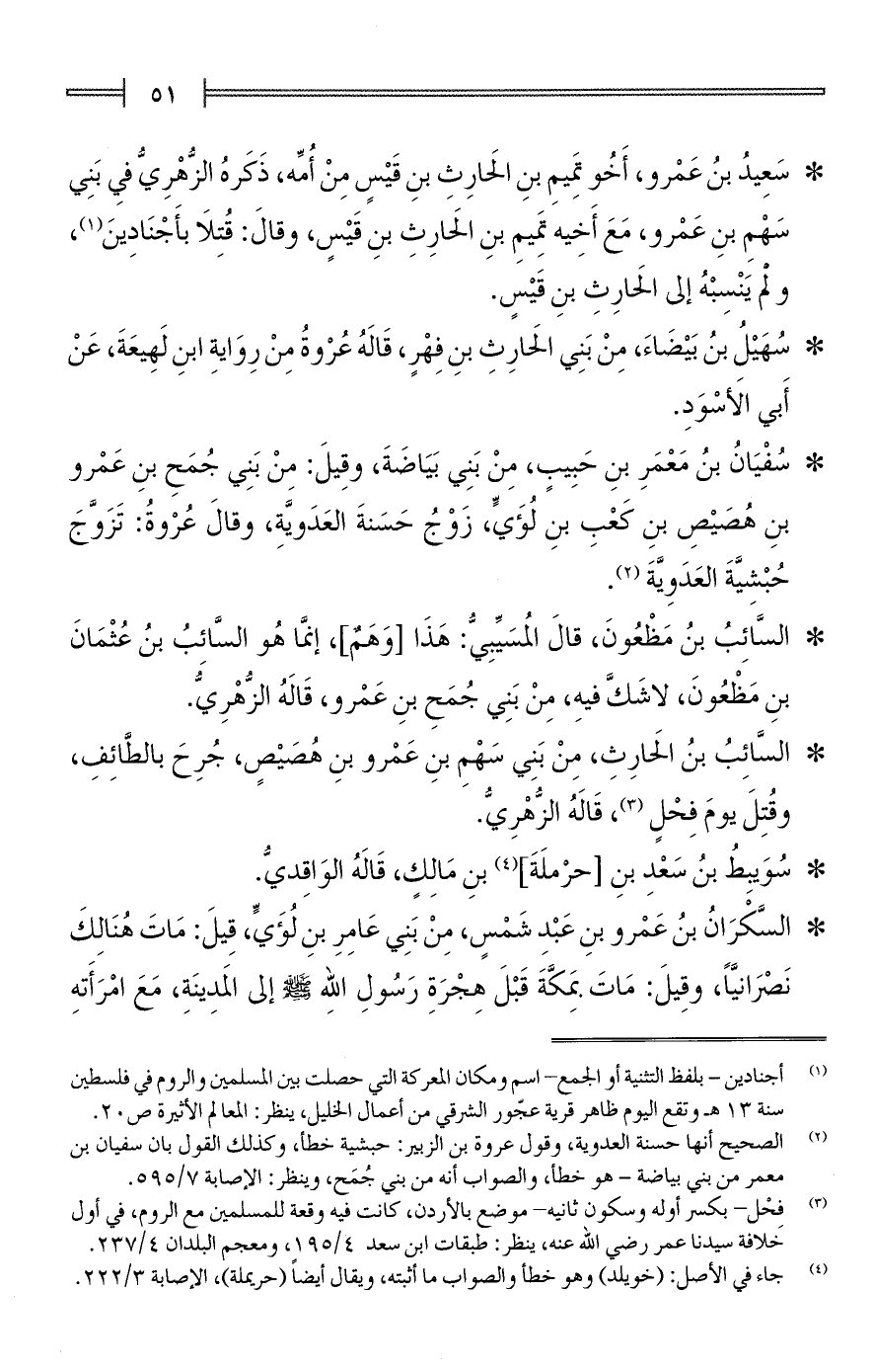 (¬2) الصحيح أنها حسنة العدوية، وقول عروة بن الزبير: حبشية خطأ، وكذلك القول بأن سفيان بن معمر من بني بياضة - هو خطأ، والصواب أنه من بني جُمَح، وينظر: الإصابة 7/ 595.
