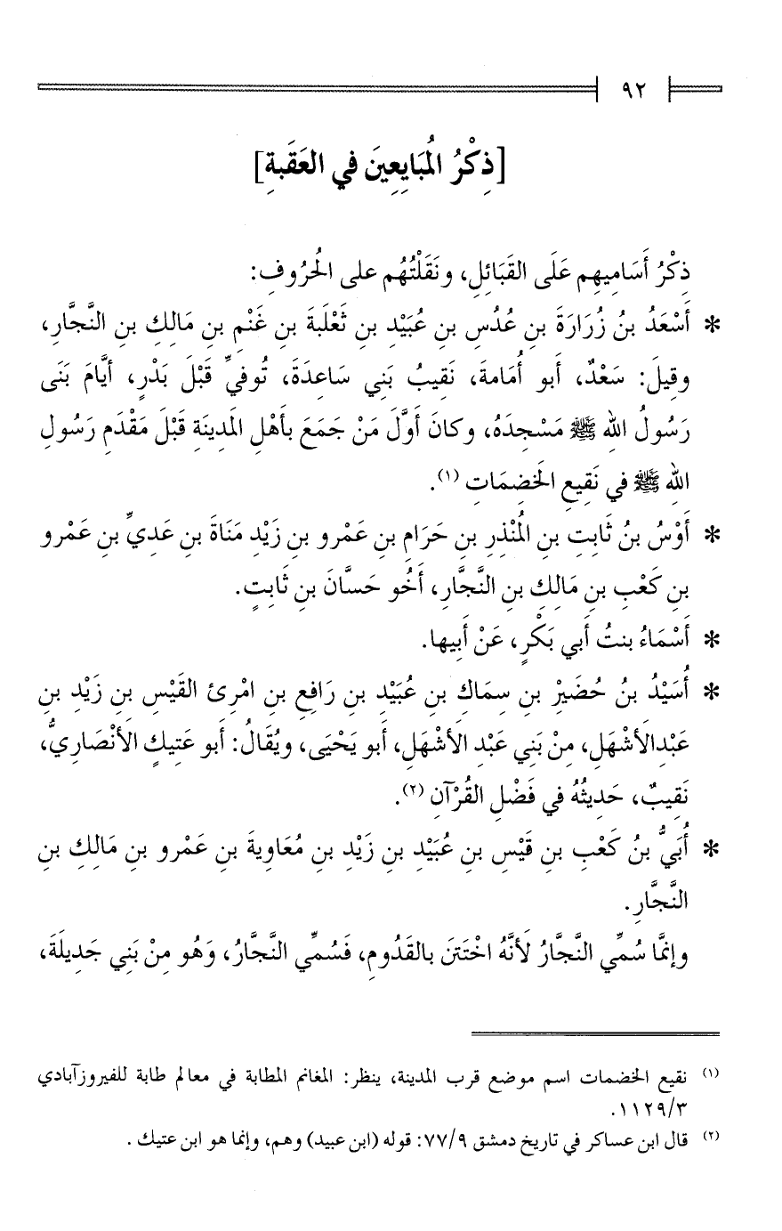 [ذِكْرُ الُمبَايِعِينَ في العَقَبةِ]