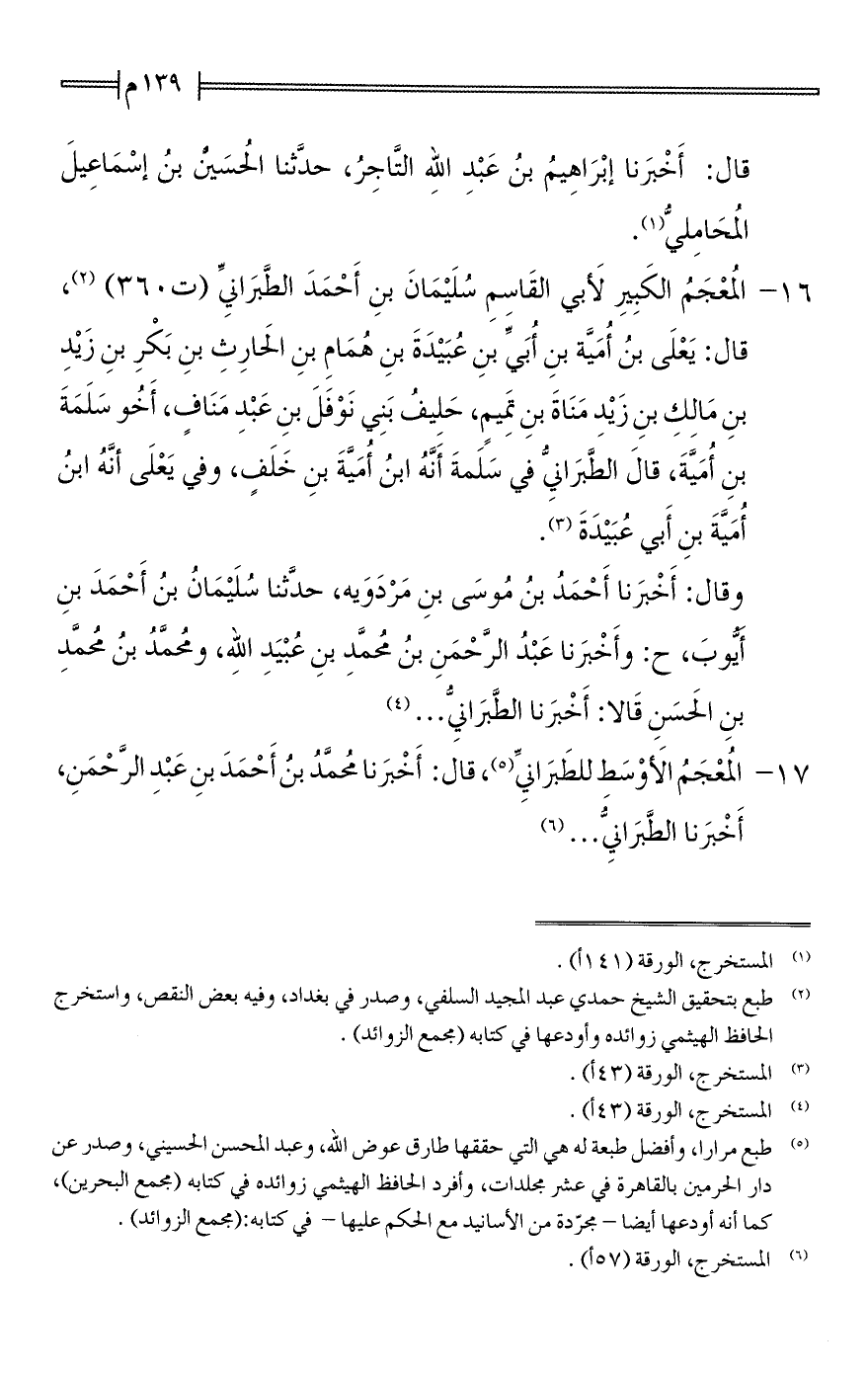 17 - المُعْجَمُ الأَوْسَطِ للطَبَرانيِّ (¬5)، قال: أَخْبَرنا مُحمَّدُ بنُ أَحْمَدَ بنِ عَبْدِ الرَّحْمَنِ، أَخْبَرنا الطَّبَرانِيُّ ... (¬6)