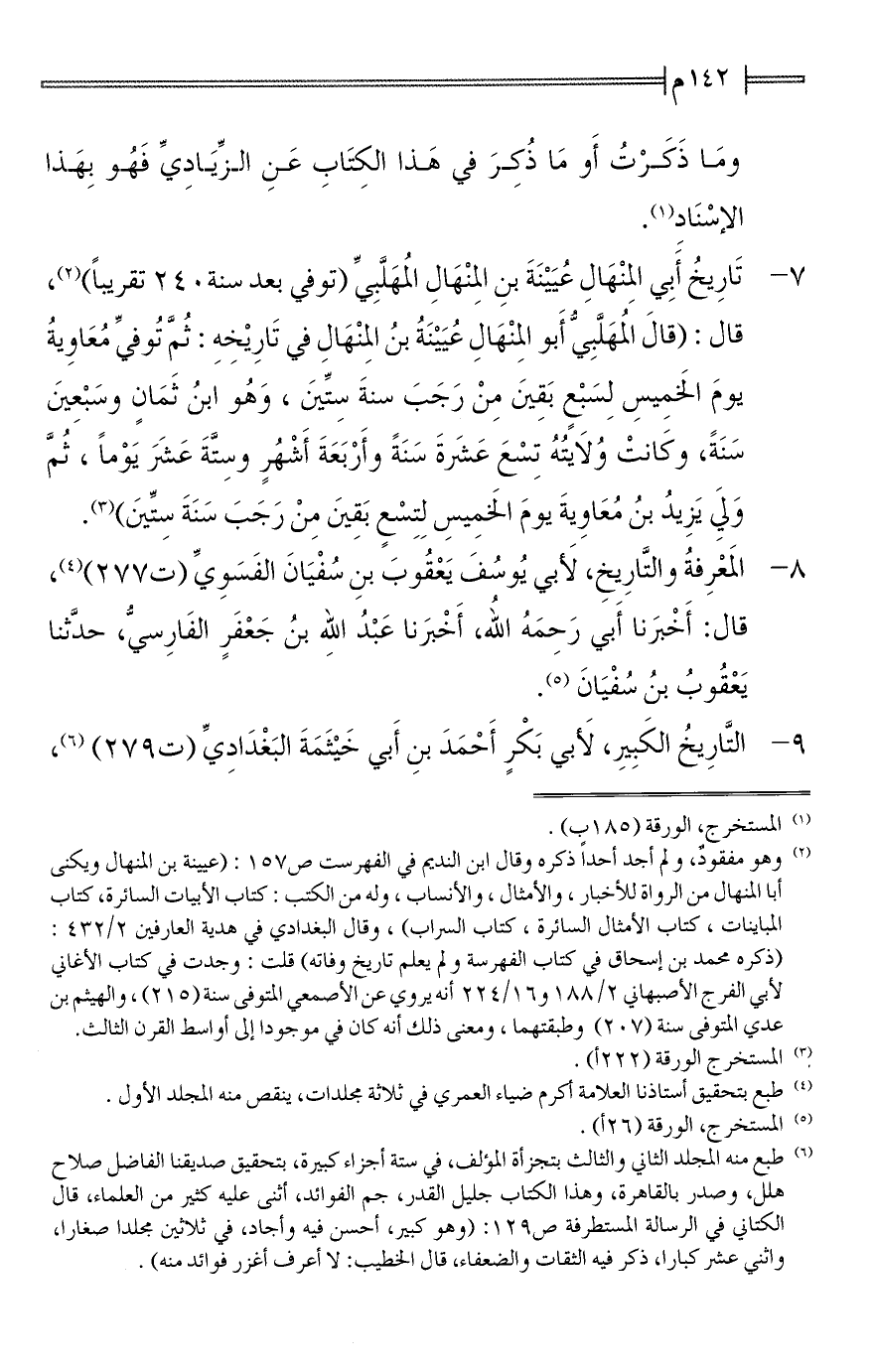 8 - المَعْرِفةُ والتَّارِيخِ، لأَبي يُوسُفَ يَعْقُوبَ بنِ سُفْيَانَ الفَسَوِيِّ (ت 277) (¬4)، قال: أَخْبَرنا أَبي رَحِمَهُ الله، أَخْبَرنا عَبْدُ الله بنُ جَعْفَرٍ الفَارِسيُّ، حدَّثنا يَعْقُوبُ بنُ سُفْيَانَ (¬5).