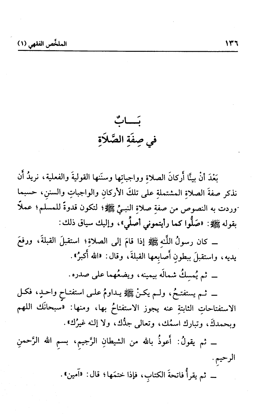 بعد أن بينَّا أركان الصلاة وواجباتها وسننها القولية والفعلية نريد أن نذكر صفة الصلاة المشتملة على تلك الأركان والواجبات والسنن حسبما وردت به النصوص من صفة صلاة النبي؛ لتكون قدوة للمسلم؛ عملاً بقوله: "وصلوا كما رأيتموني أصلي"، وإليك سياق ذلك.