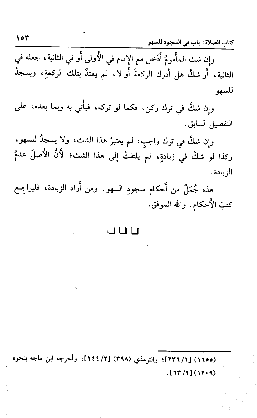 هذه جمل من أحكام سجود السهو، ومن أراد الزيادة؛ فليراجع كتب الأحكام، والله الموفق.