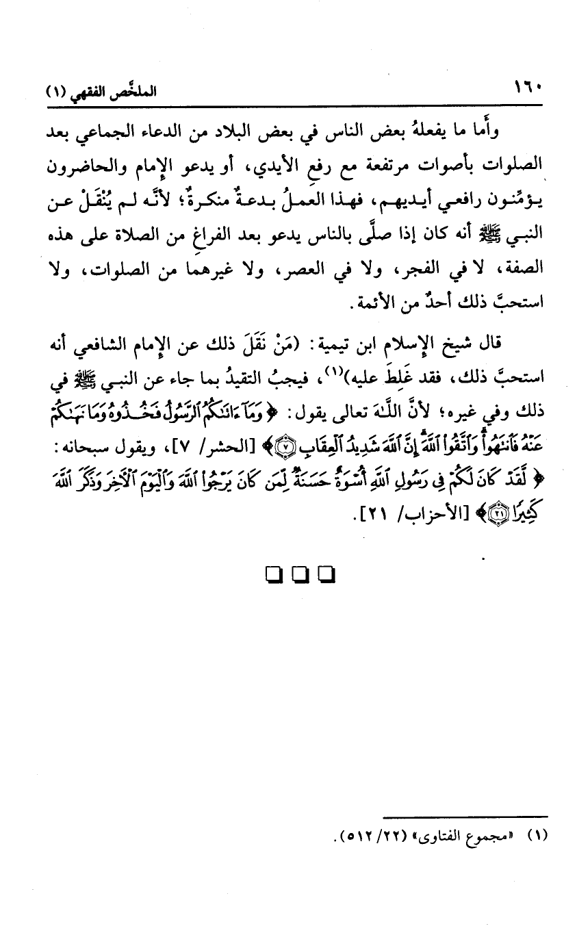 وأما يفعله بعض الناس في بعض البلاد من الدعاء الجماعي بعد الصلوات بأصوات مرتفعة مع رفع الأيدي، أو يدعو الإمام والحاضرون يؤمنون رافعي أيديهم؛ فهذا العمل بدعة منكرة؛ لأنه لم ينقل عن النبي أنه كان إذا صلى بالناس يدعو بعد الفراغ من الصلاة على هذه الصفة؛ لا في الفجر، ولا في العصر ولا غيرهما من الصلوات، ولا استحب ذلك أحد من الأئمة.