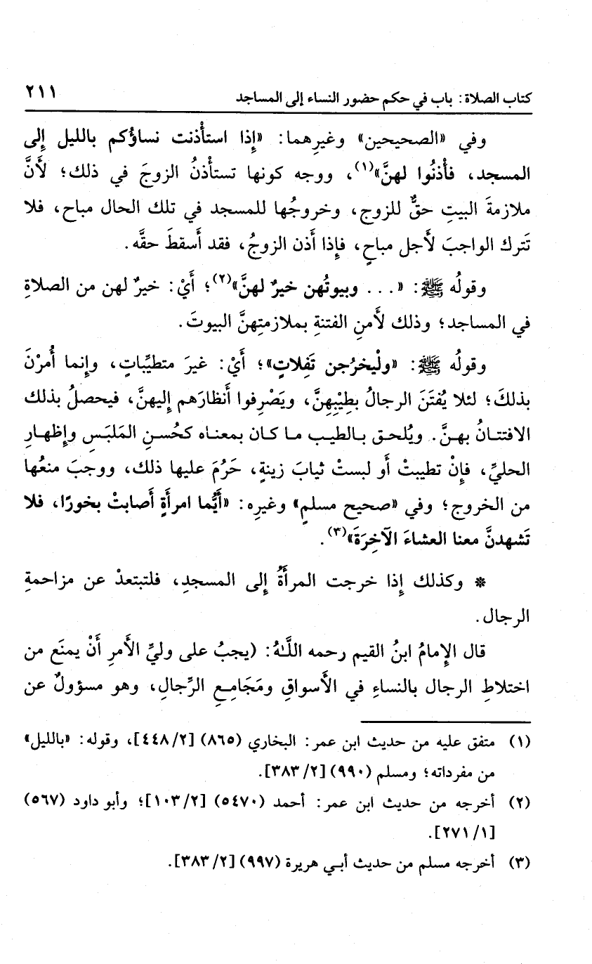 وفي "الصحيحين " وغيرهما: "إذا استأذنت نساءكم بالليل إلى المساجد؛ فأذنوا لهن".