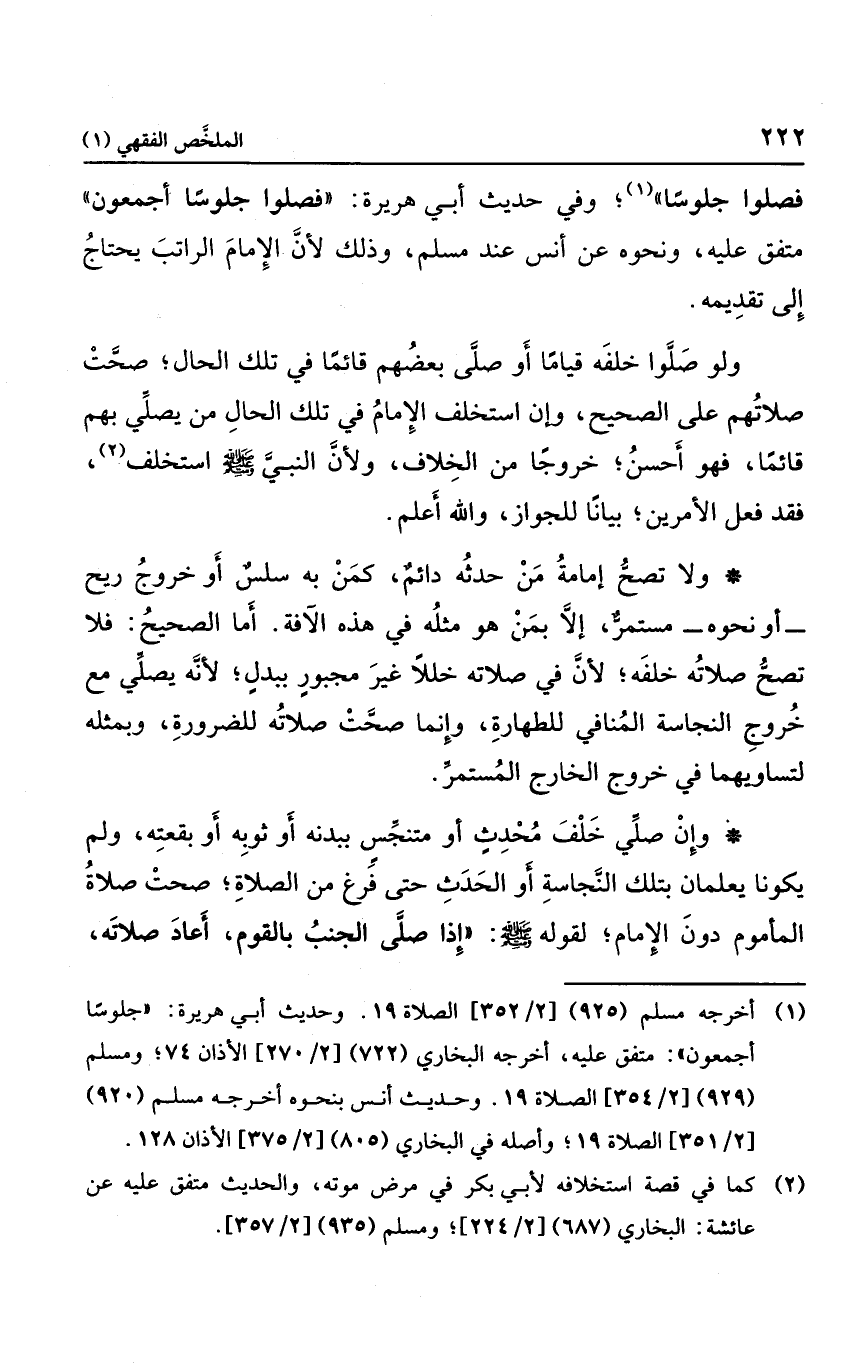 فصلوا جلوسا أجمعون"، وذلك لأن الإمام الراتب يحتاج إلى تقديمه.