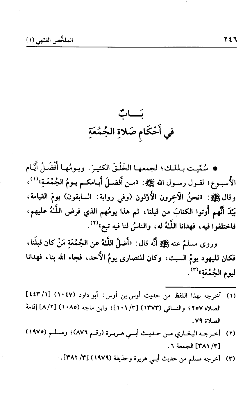 وقال صلى الله عليه وسلم: "نحن الآخرون الأولون السابقون يوم القيامة؛ بيد أنهم أوتوا الكتاب من قبلنا، ثم هذا يومهم الذي فرض الله عليهم، فاختلفوا فيه، فهدانا الله له، والناس لنا فيه تبع".
