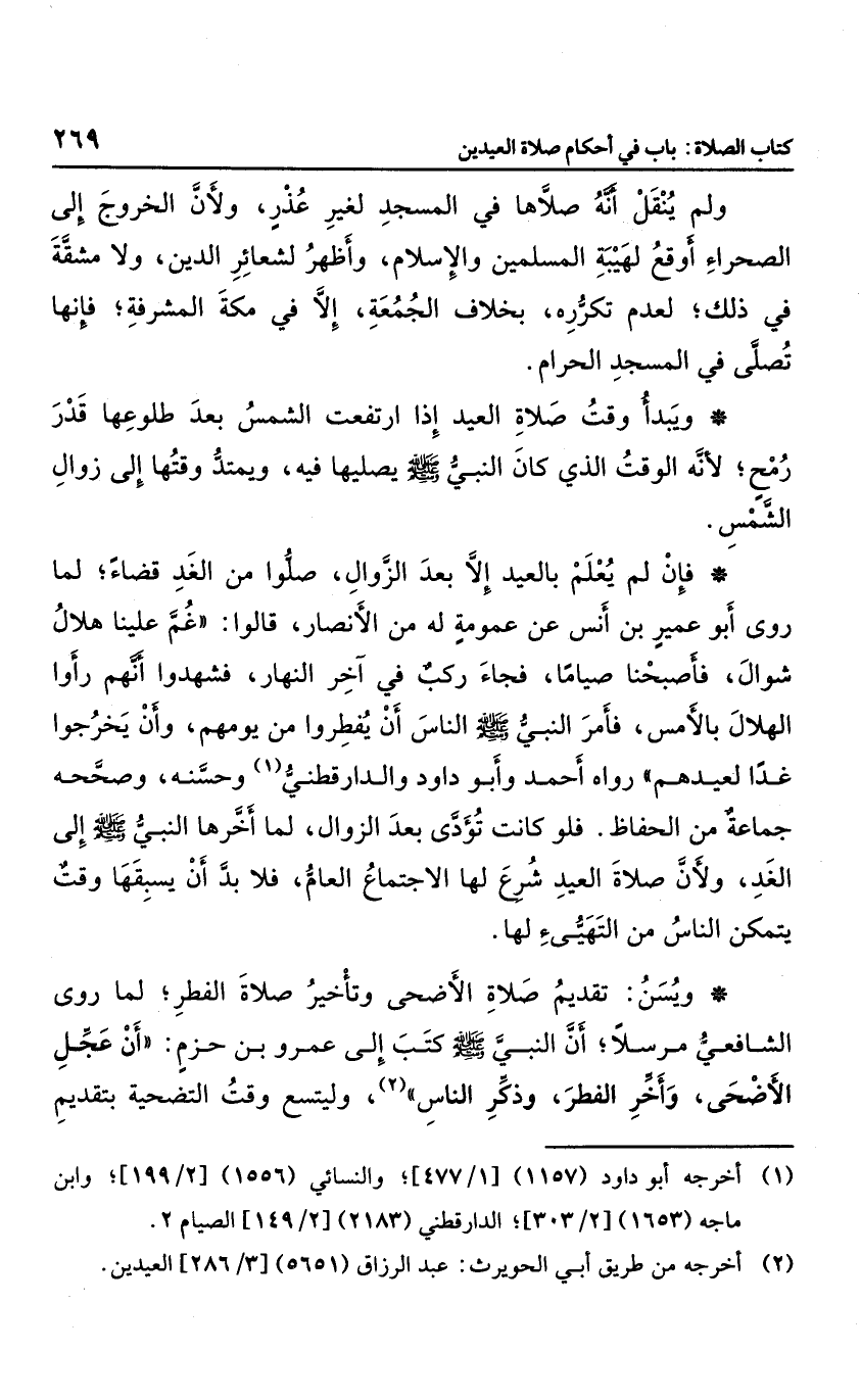ولم ينقل أنه صلاها في المسجد لغير عذر، ولن الخروج إلى الصحراء أوقع لهيبة المسلمين والإسلام، وأظهر لشعائر الدين، ولا مشقة في ذلك؛ لعدم تكرره؛ بخلاف الجمعة؛ إلا في مكة المشرفة؛ فإنها تصلى في المسجد الحرام.
