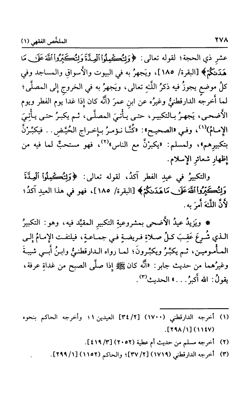 عشر ذي الحجة لقوله تعالى: {وَلِتُكْمِلُوا الْعِدَّةَ وَلِتُكَبِّرُوا اللَّهَ عَلَى مَا هَدَاكُمْ} ، ويجهر به في البيوت والأسواق والمساجد وفي كل موضع يجوز فيه ذكر الله تعالى، ويجهر به في الخروج إلى المصلى؛ لما أخرجه الدارقطني وغيره عن ابن عمر: "أنه إذا غدا يوم الفطر ويوم الأضحى يجهر بالتكبير، حتى يأتي المصلى، ثم يكبر حتى يأتي الإمام"، وفي "الصحيح": "كنا يؤمر بإخراج الحيض، فيكبرن بتكبيرهم"، ولمسلم: "يكبرن مع الناس"؛ فهو مستحب لما فيه من إظهار شعائر الإسلام.