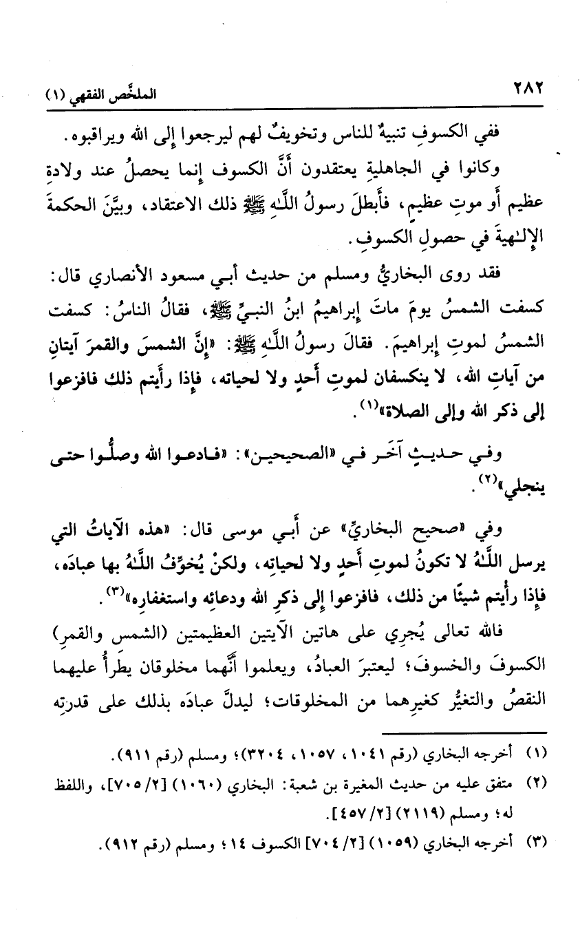 فقد روى البخاري ومسلم من حديث ابن مسعود الأنصار؛ قال: انكسفت الشمس يوم مات إبراهيم ابن النبي صلى الله عليه وسلم، فقال الناس: انكسف الشمس لموت إبراهيم. فقال رسول الله صلى الله عليه وسلم: "إن الشمس والقمر آيتان من آيات الله، لا ينكسفان لموت أحد ولا لحياته، فإذا رأيتم ذلك؛ فافزعوا إلى ذكر الله وإلى الصلاة".