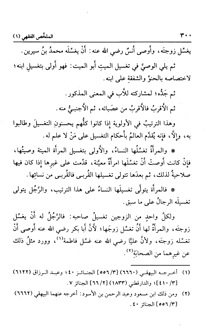 يغسل زوجته، وأوصى أنس رضي الله عنه أن يغسله محمد بن سيرين، ثم يلي الوصي في تغسيل الميت أبو الميت؛ فهو أولى بتغسيل ابنه؛ لاختصاصه بالحنو والشفقة على ابنه، ثم جده؛ لمشاركته للأب في المعنى المذكور، ثم الأقرب فالأقرب من عصابته، ثم الأجنبي منه، وهذا الترتيب في الأولوية إذا كانوا كلهم يحسنون التغسيل وطالبوا به، وإلا؛ فإنه يقدم العالم بأحكام التغسيل على من لا علم له.