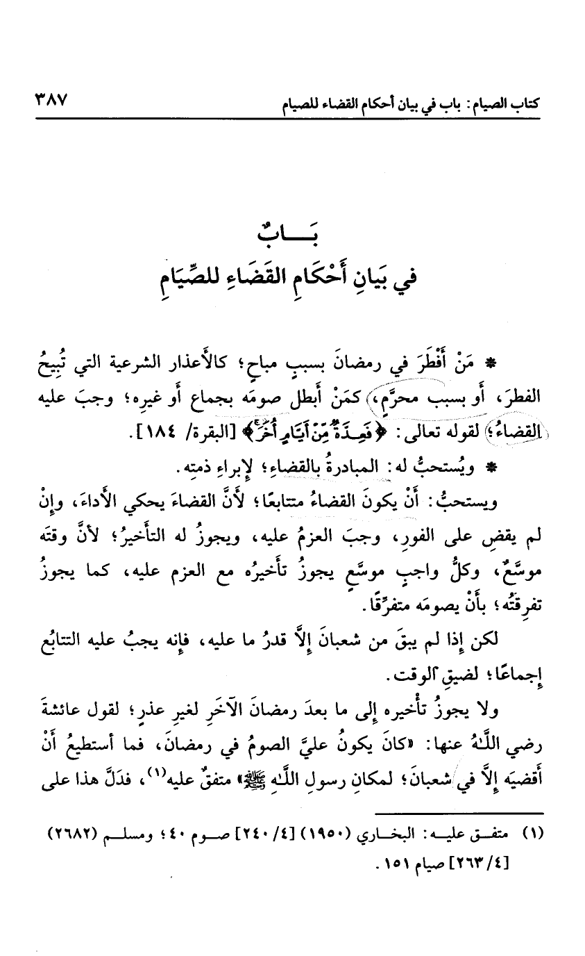 باب في بيان أحكام القضاء للصيام