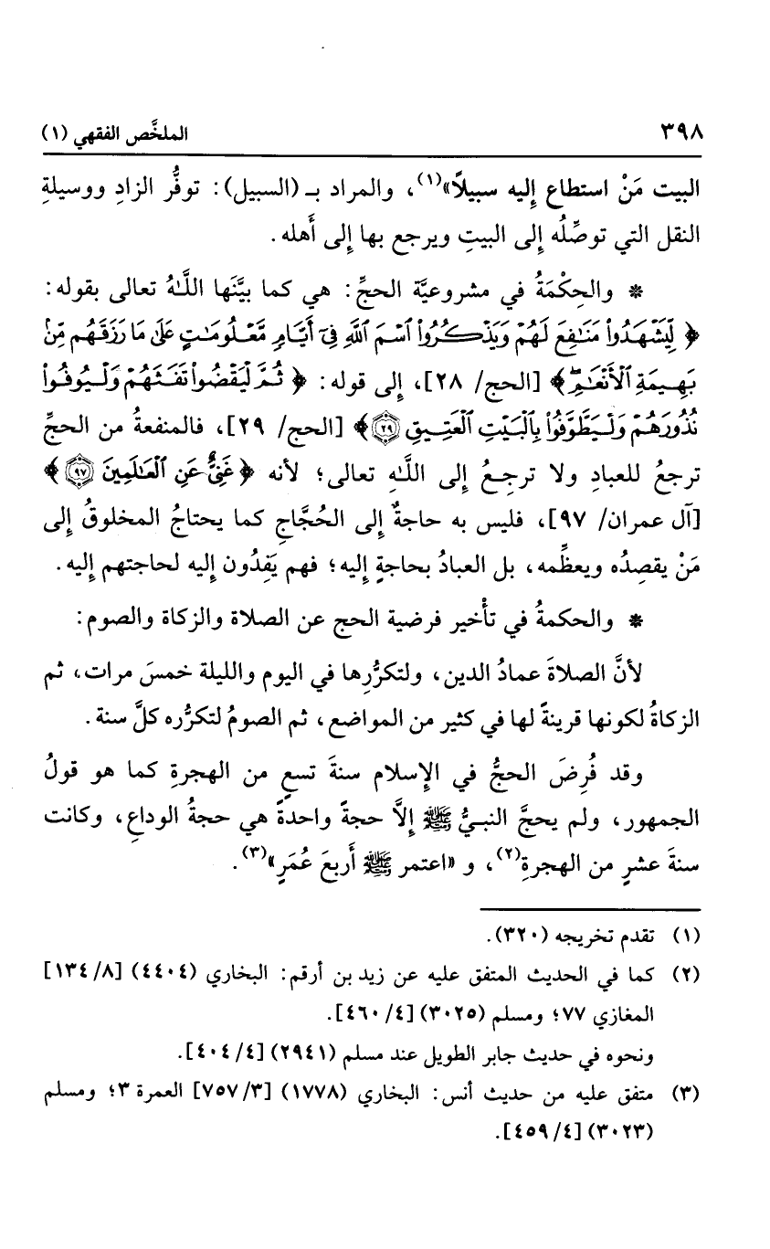 البيت من استطاع إليه سبيلا"، والمراد ب "السبيل" توفر الزاد ووسيلة النقل التي توصله إلى البيت ويرجع بها إلى أهله.