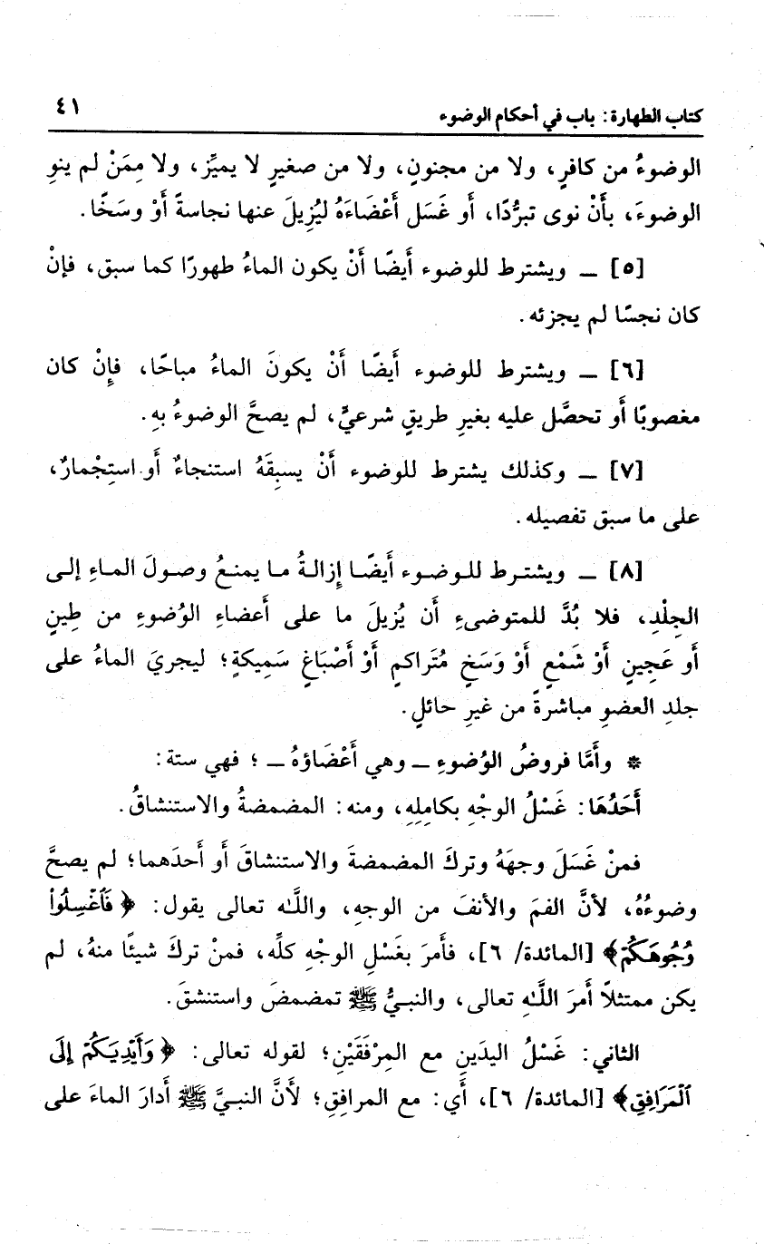 وأما فروض الوضوء وهي أعضاؤه؛ فهي ستة: