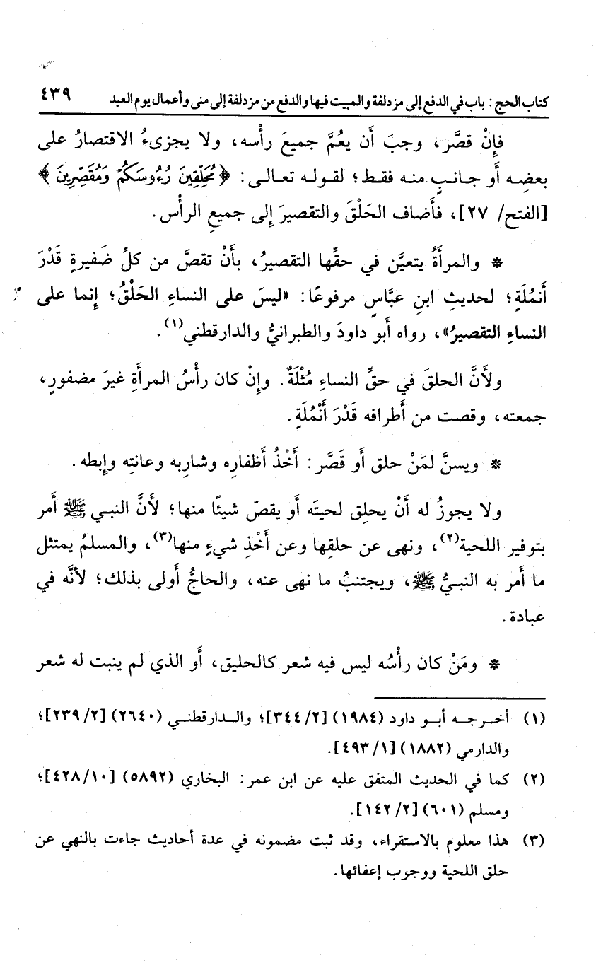ويسن لمن حلق أو قصر اخذ أظفاره وشاربه وعانته وإبطه، ولا يجوز له أن يحلق لحيته أو يقص شيئا منها؛ لأن النبي صلى الله عليه وسلم أمر بتوفير اللحية، ونهى عن حلقها وعن أخذ شيء منها، والمسلم يمتثل ما أمر به النبي صلى الله عليه وسلم، ويجتنب ما نهى عنه، والحاج أولى بذلك؛ لأنه في عبادة.