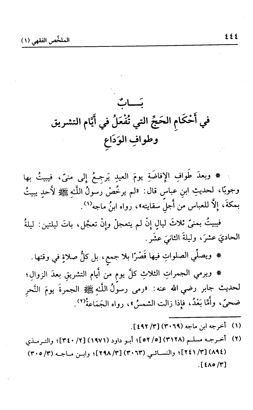 باب في أحكام الحج التي تفعل في أيام التشريق وطواف الوداع