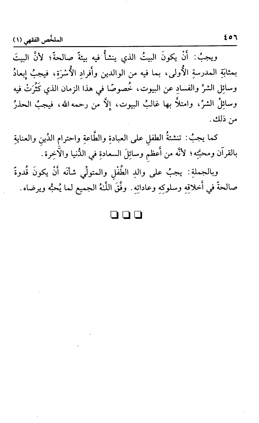 وبالجملة؛ يجب على والد الطفل والمتولي شأنه أن يكون قدوة صالحة في أخلاقه وسلوكه وعادته، وفق الله الجميع لما يحبه ويرضاه.