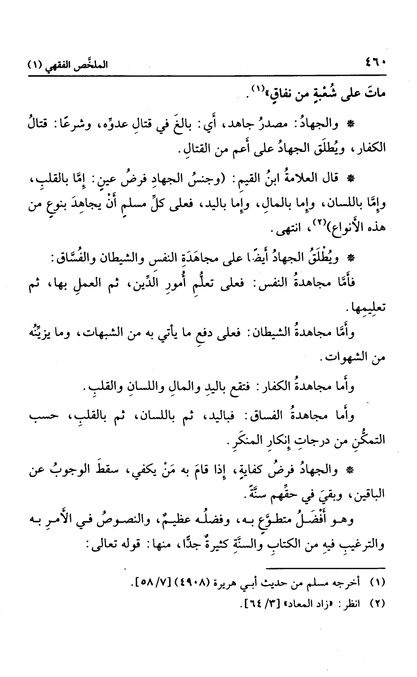 فأما مجاهدة النفس؛ فعلى تعلم أمور الدين، ثم العمل بها، ثم تعليمها.