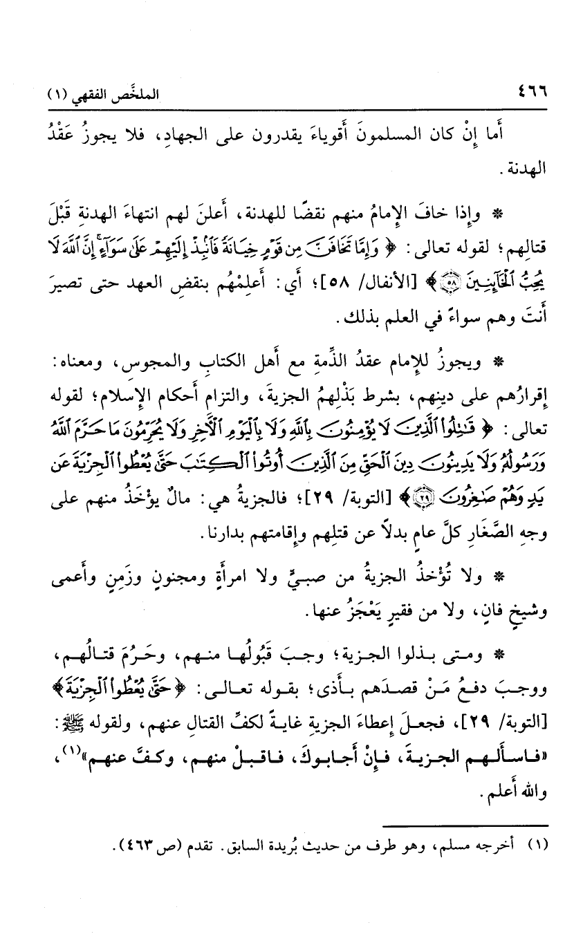 ولا تؤخذ الجزية من صبي ولا امرأة ومجنون وزمن وأعمى وشيخ فان، ولا من فقير يعجز عنها.