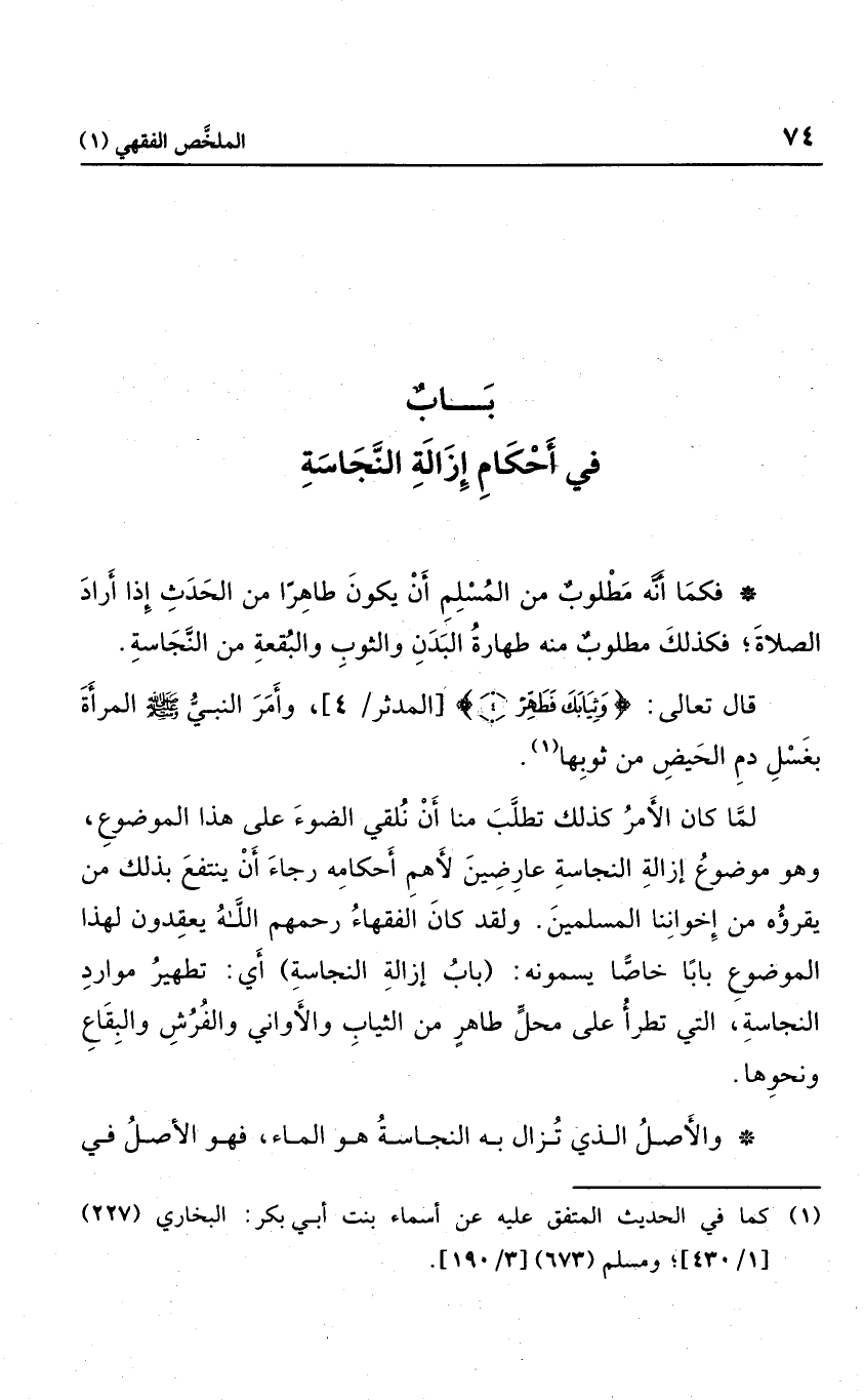 لما كان الأمر كذلك؛ تطلب منا أن نلقي الضوء على هذا الموضوع، وهو موضوع إزالة النجاسة، عارضين لأهم أحكامه، رجاء أن ينتفع بذلك من يقرؤه من إخواننا المسلمين، ولقد كان الفقهاء رحمهم الله يعقدون لهذا الموضوع بابا خاصا، يسمونه: باب إزالة النجاسة؛ أي: تطهير موارد النجاسة، أي: تطهير موارد النجاسة، التي تطرأ على محل طاهر من الثياب والأواني والفرش والبقاع ونحوها.
