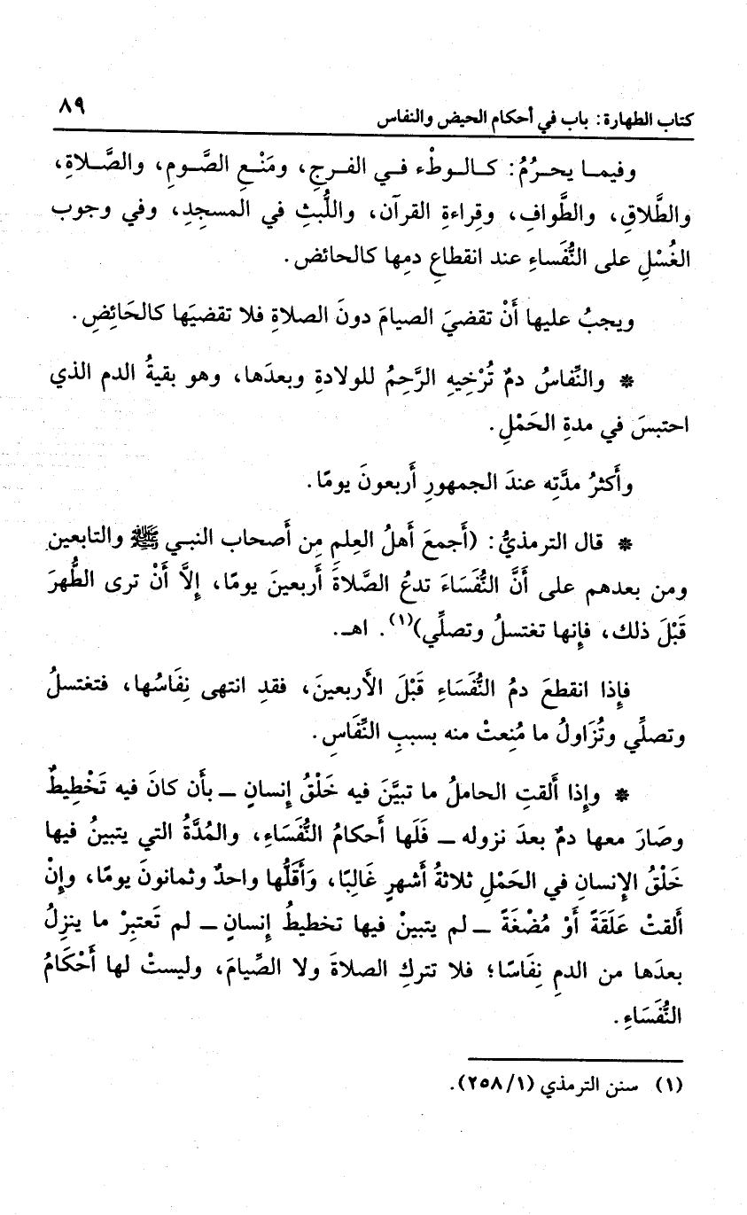 والنفاس دم ترخية الرحم للولادة وبعدها، وهو بقية الدم الذي احتبس في مدة الحمل، وأكثر مدته عند الجمهور أربعون يوما.