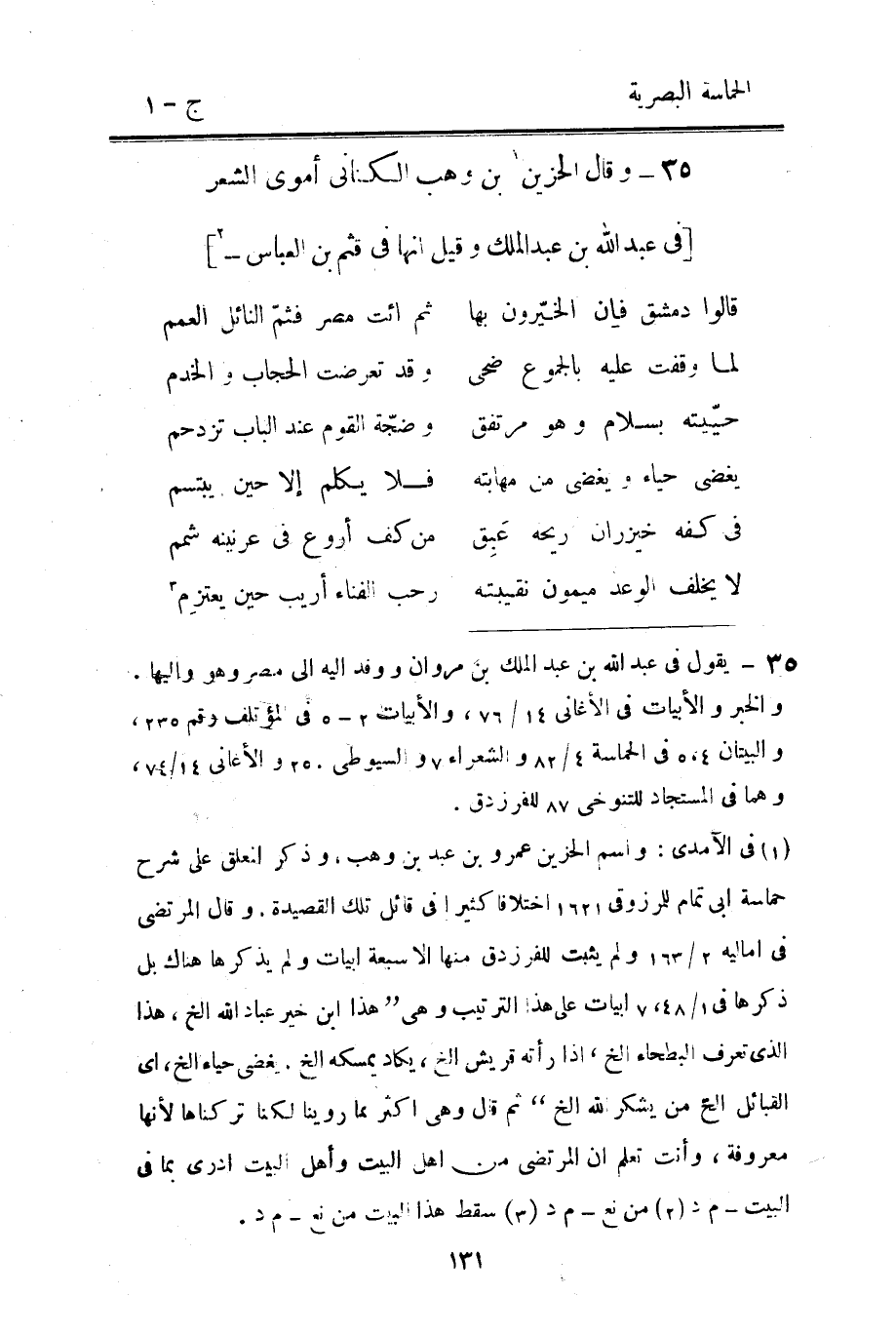 35 - وَقَالَ الحزين بن وهب الْكِنَانِي أموي الشعرفي عبد الله بن عبد الْملك وَقيل أَنَّهَا فِي قثم بن الْعَبَّاس
