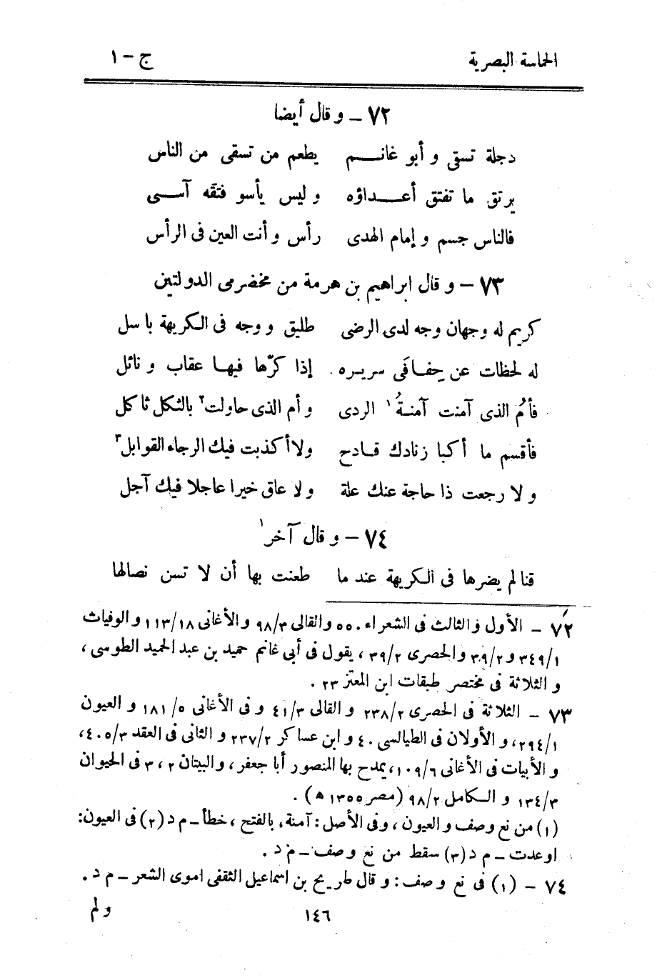 73 - وَقَالَ إِبْرَهِيمُ بن هرمة من مخضرمي الدولتين