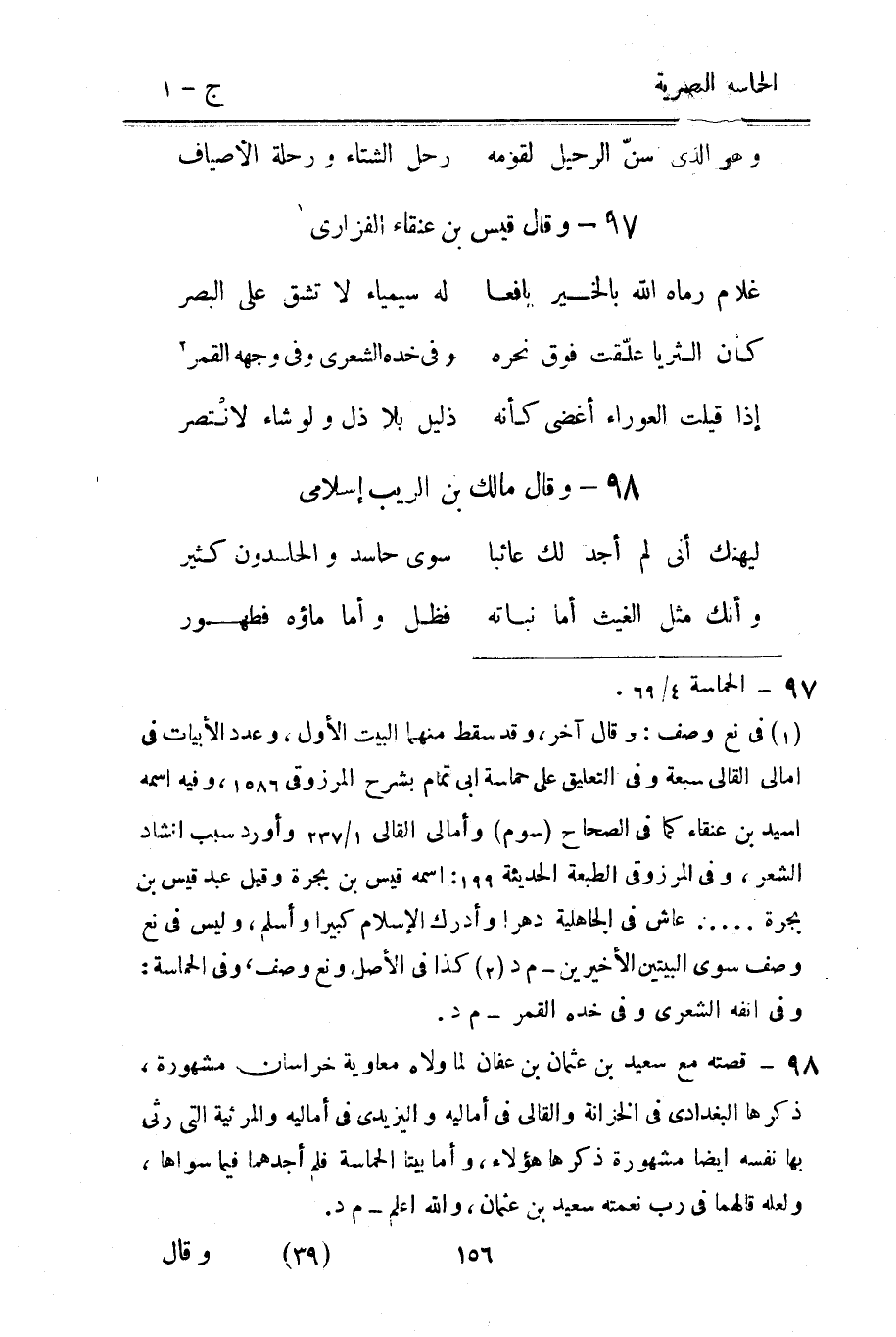 97 - وَقَالَ قيس بن عنقاء الْفَزارِيّ