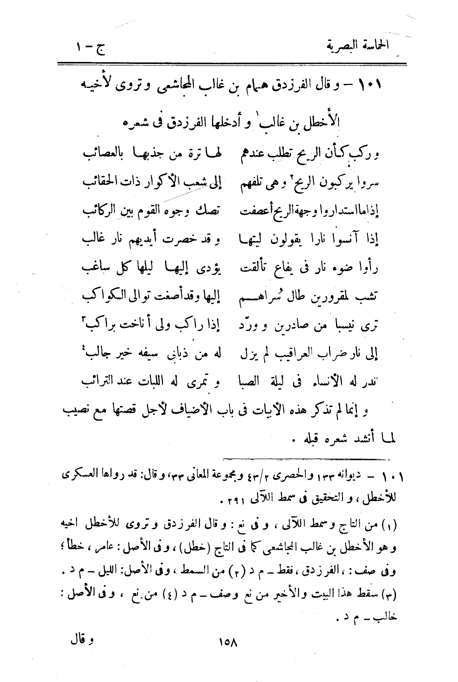 101 - وَقَالَ الفرزدق همام بن غَالب الْمُجَاشِعِي وتروى لِأَخِيهِ الأخطل بن غَالب وأدخلها الفرزدق فِي شعره
