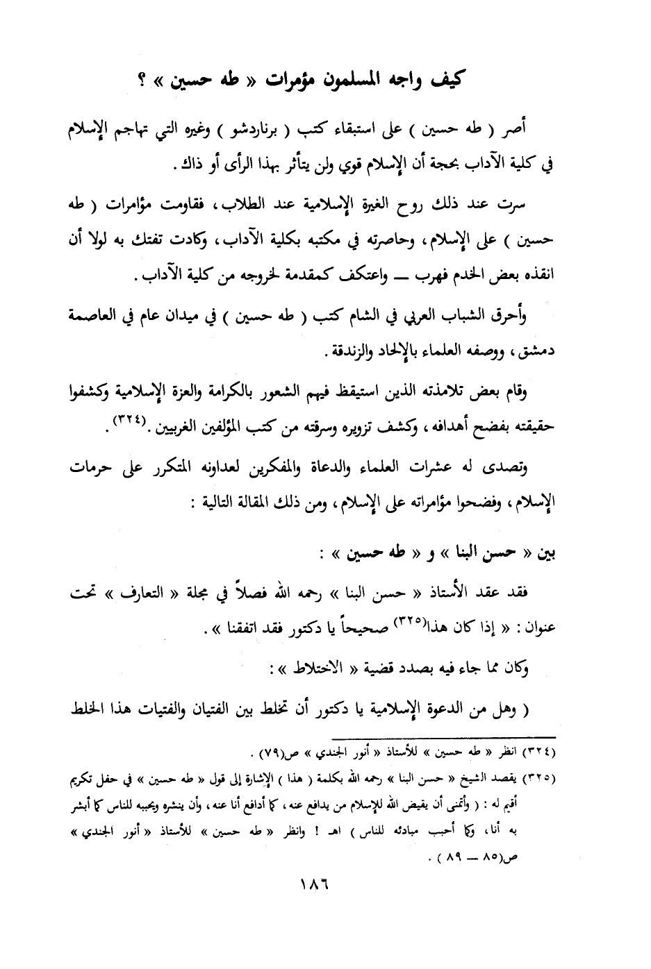 (324) انظر " طه حسين " للأستاذ أنور الجندي ص (79) .