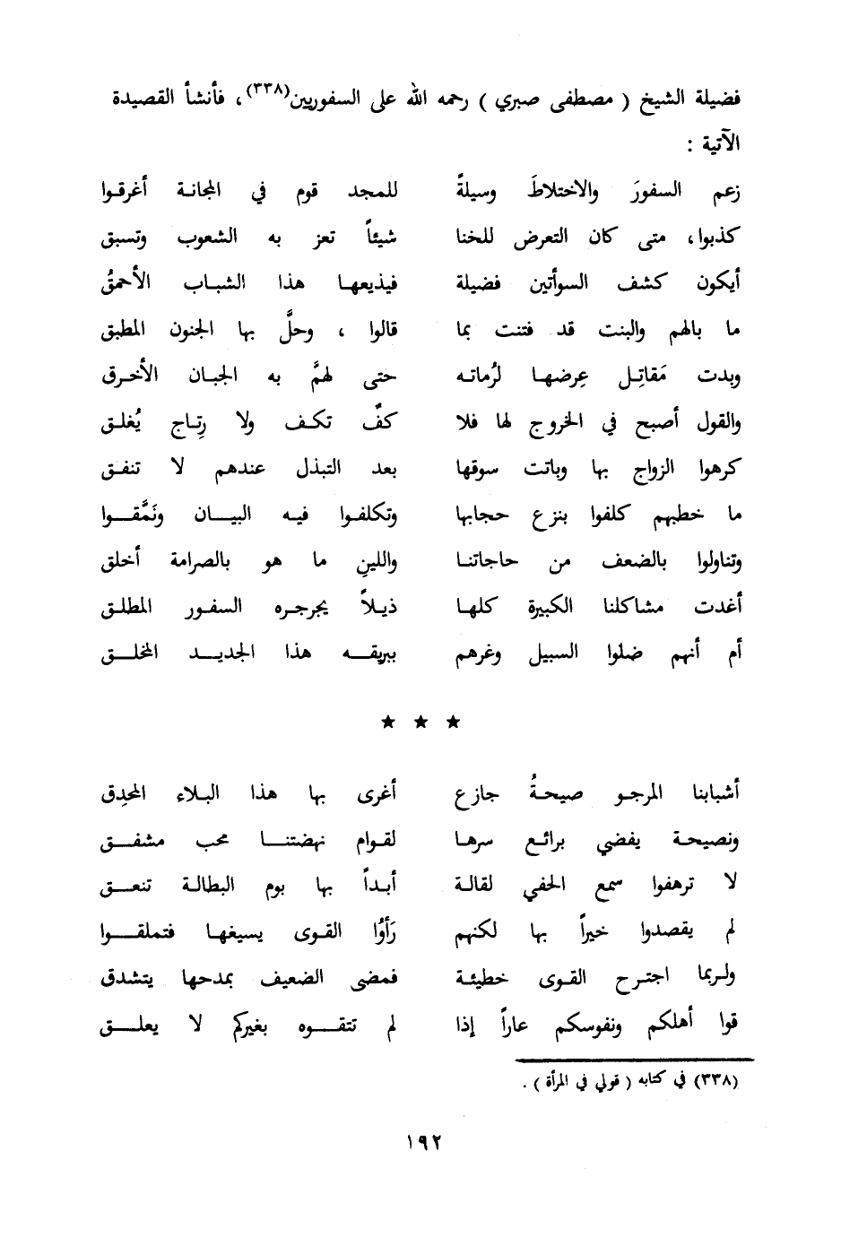 فضيلة الشيخ (مصطفى صبري) رحمه الله على السفوريين (338) فأنشأ القصيدة الآتية: