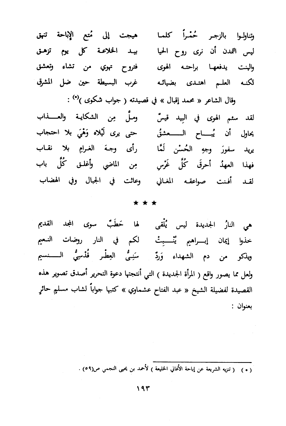 قال الشاعر " محمد إقبال " في قصيدته " جواب شكوى " (*) :