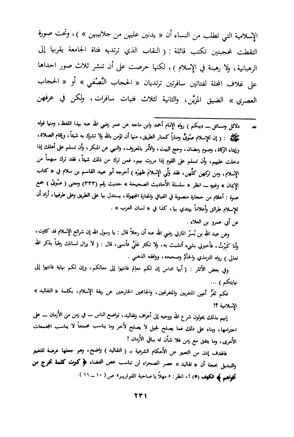 فكم تفر أعين المتغربين والمتفرنجين والمجامحين الخارجين عن ربقة الإسلام بكلمة " التقاليد " الإسلامية؟!