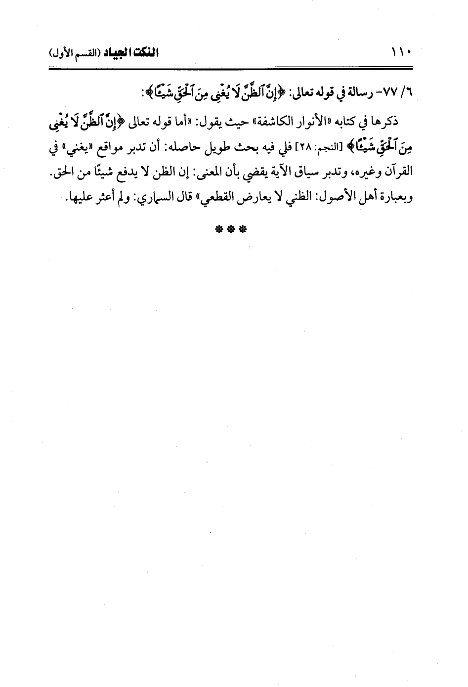 6/ 77 - رسالة في قوله تعالى: {إِنَّ الظَّنَّ لَا يُغْنِي مِنَ الْحَقِّ شَيْئًا}: