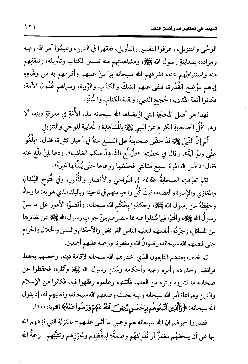 فهذا هو أصل المحجّةِ التي ارْتضاها الله سبحانه لهذه الأُمّةِ في معرفةِ دينهِ، ألا وهو نقْلُ الصحابةِ الكرامِ عن النبي -صلى الله عليه وسلم- بالمُشاهدِة والمُعاينة للوحْي والتنزيلِ.
