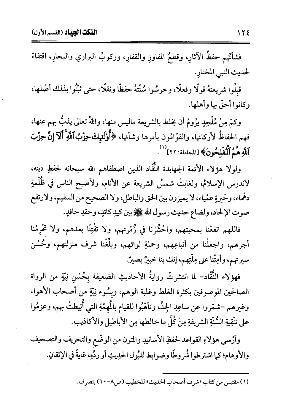 ولولا هؤلاء الأئمة الجهابذة النُّقّاد الذين اصطفاهم الله سبحانه لحفظِ دينه، لاندرس الإسلامُ، ولغابتْ شمسُ الشريعة عن الأنام، ولأصبح الناس في ظُلْمةٍ دهْماء، وحْيرةٍ عمْياء، لا يميزون بين الحق والباطل، ولا الصحيح من السقيم، ولارتفع صوت الإلحاد، ولضاع حديث رسول الله -صلى الله عليه وسلم- بين كيدِ كائدٍ، وحقدِ حاقدٍ.