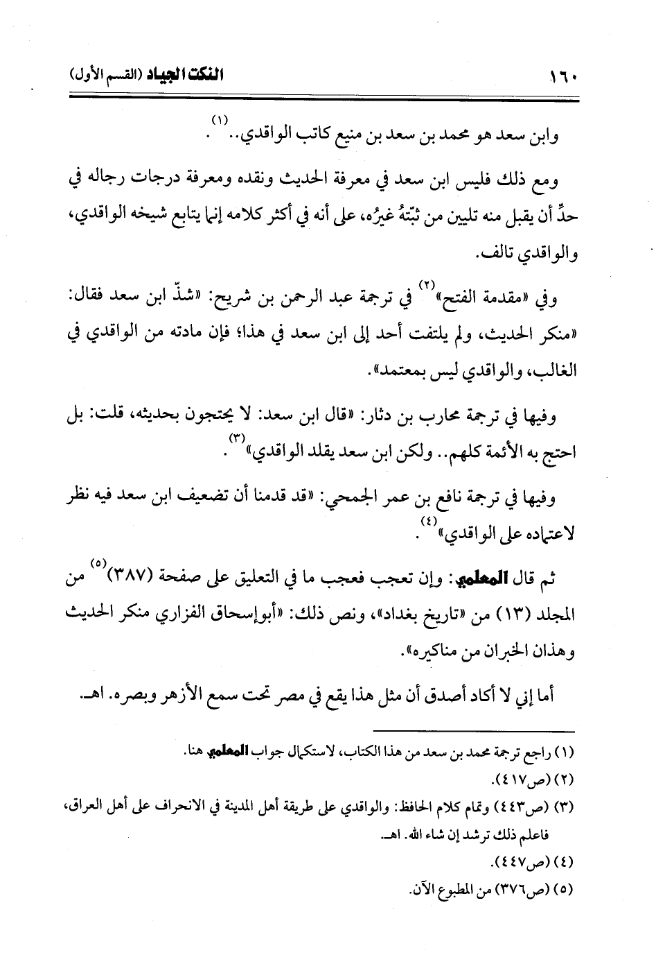 (¬3) (ص 443) وتمام كلام الحافظ: والواقدي على طريقة أهل المدينة في الانحراف على أهل العراق، فاعلم ذلك ترشد إن شاء الله. اهـ.