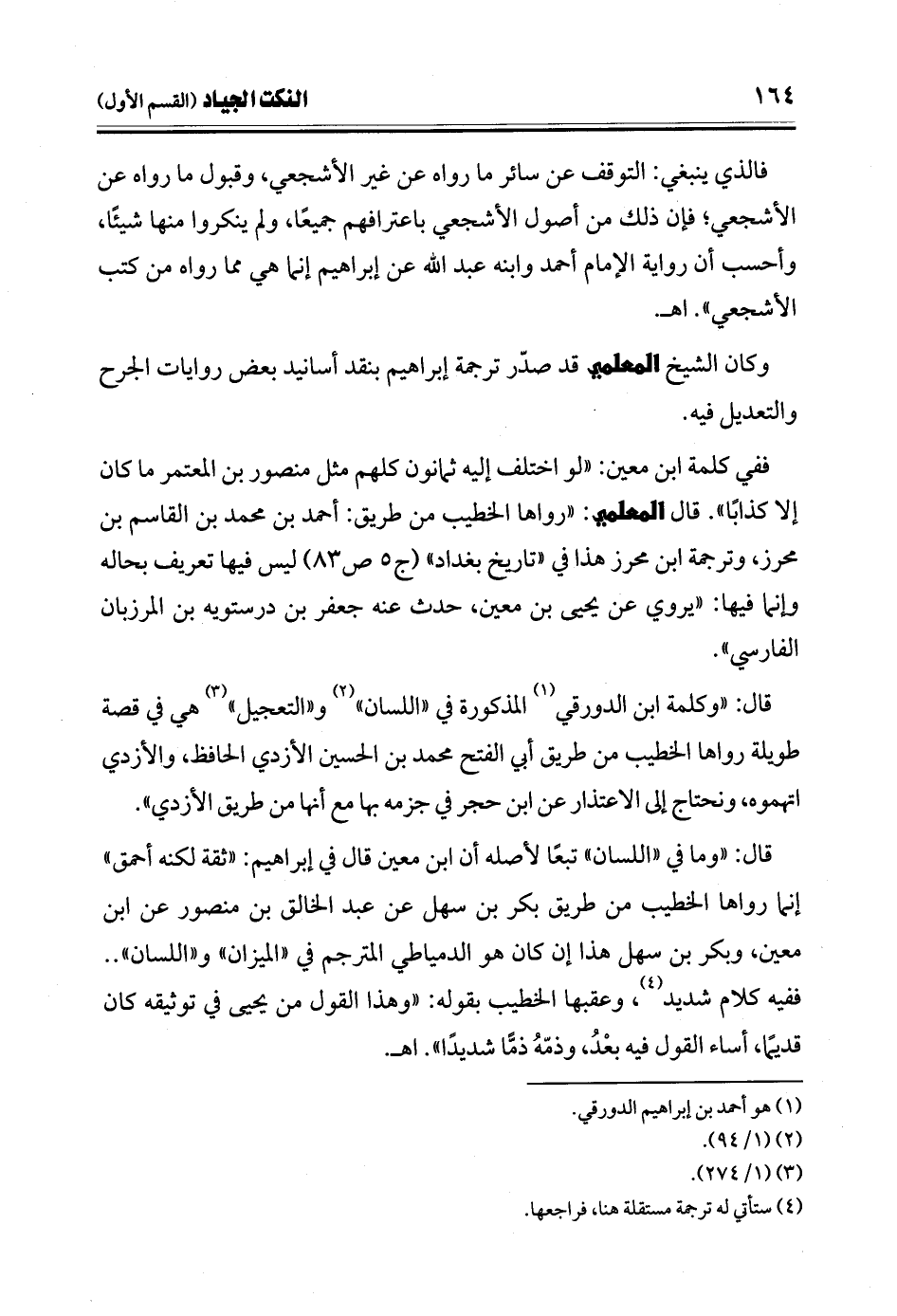 وكان الشيخ المعلمي قد صدّر ترجمة إبراهيم بنقد أسانيد بعض روايات الجرح والتعديل فيه.