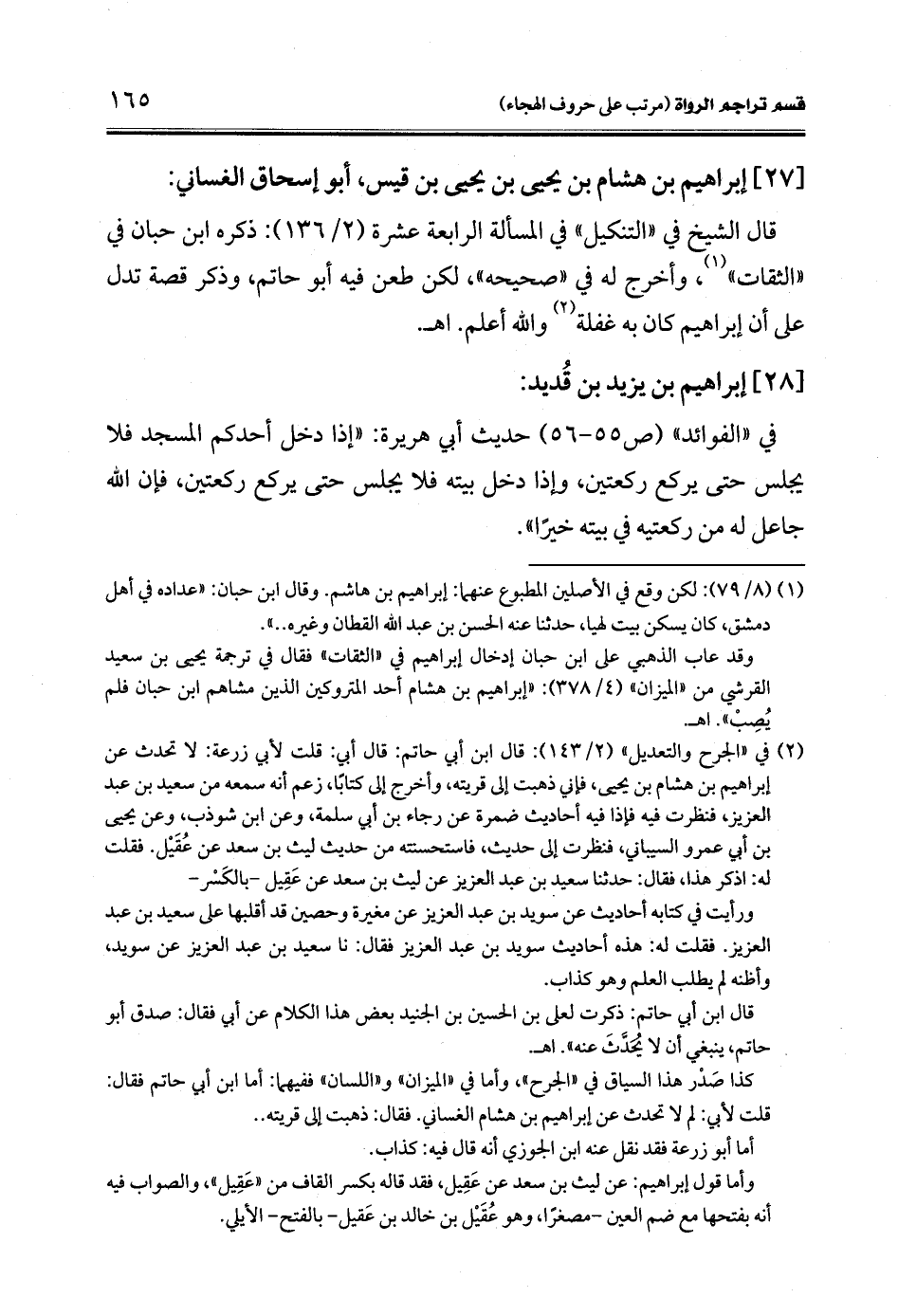 (¬1) (8/ 79): لكن وقع في الأصلين المطبوع عنهما: إبراهيم بن هاشم. وقال ابن حبان: "عداده في أهل دمشق، كان يسكن بيت لهيا، حدثنا عنه الحسن بن عبد الله القطان وغيره .. ".