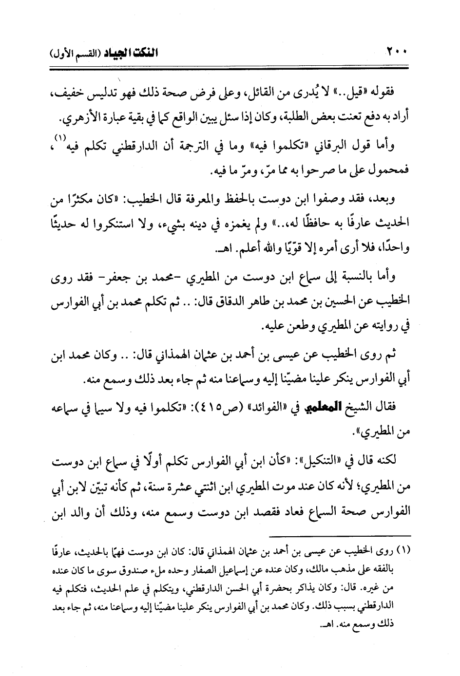 (¬1) روى الخطيب عن عيسى بن أحمد بن عثمان الهمذاني قال: كان ابن دوست فهمًا بالحديث، عارفًا بالفقه على مذهب مالك، وكان عنده عن إسماعيل الصفار وحده ملء صندوق سوى ما كان عنده من غيره. قال: وكان يذاكر بحضرة أبي الحسن الدارقطني، ويتكلم في علم الحديث، فتكلم فيه الدارقطني بسبب ذلك. وكان محمد بن أبي الفوارس ينكر علينا مضيّنا إليه وسماعنا منه، ثم جاء بعد ذلك وسمع منه. اهـ.