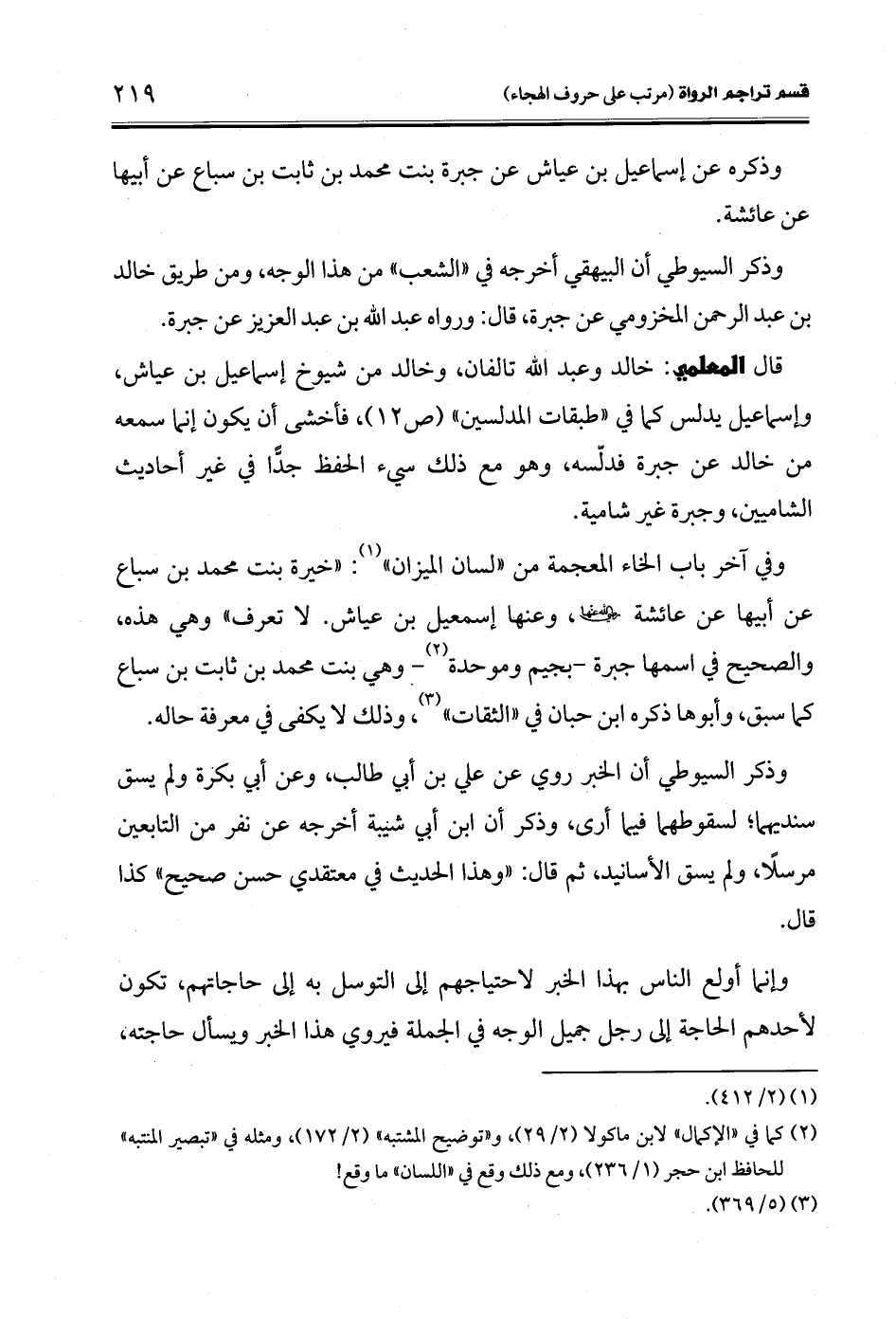 قال المعلمي: خالد وعبد الله تالفان، وخالد من شيوخ إسماعيل بن عياش، وإسماعيل يدلس كما في "طبقات المدلسين" (ص 12)، فأخشى أن يكون إنما سمعه من خالد عن جبرة فدلّسه، وهو مع ذلك سيء الحفظ جدًّا في غير أحاديث الشامين، وجبرة غير شامية.