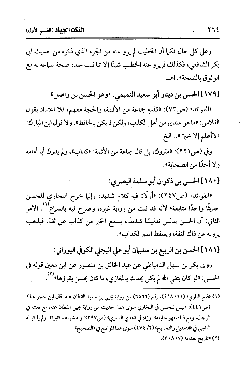 (¬1) "فتح الباري" (11/ 418)، رقم (6566) من رواية يحيى بن سعيد القطان عنه. قال ابن حجر هناك (ص 441): "ليس للحسن في البخاري سوى هذا الحديث من رواية يحيى القطان عنه، مع تعنته في الرجال، ومع ذلك فهو متابعة". وزاد في "هدي الساري" (ص 397): وله شواهد كثيرة". ولم يذكر له الباجي في "التعديل والتجريح" (2/ 474) سوى هذا الموضع في "الصحيح".