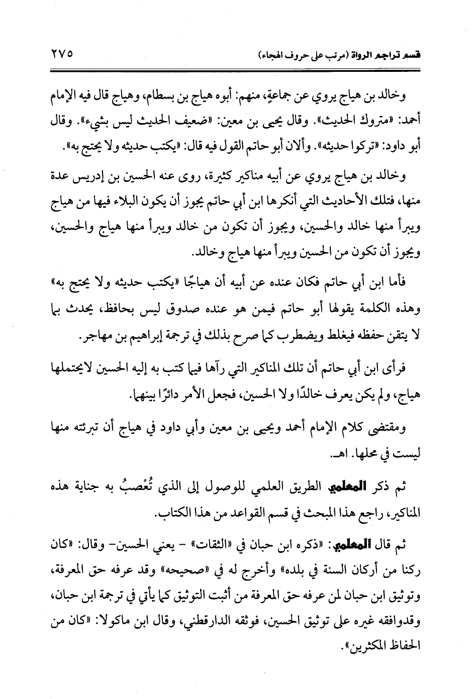 فأما ابن أبي حاتم فكان عنده عن أَبيه أن هياجًا "يكتب حديثه ولا يحتج به" وهذه الكلمة يقولها أبو حاتم فيمن هو عنده صدوق ليس بحافظ، يحدث بما لا يتقن حفظه فيغلط ويضطرب كما صرح بذلك في ترجمة إبراهيم بن مهاجر.