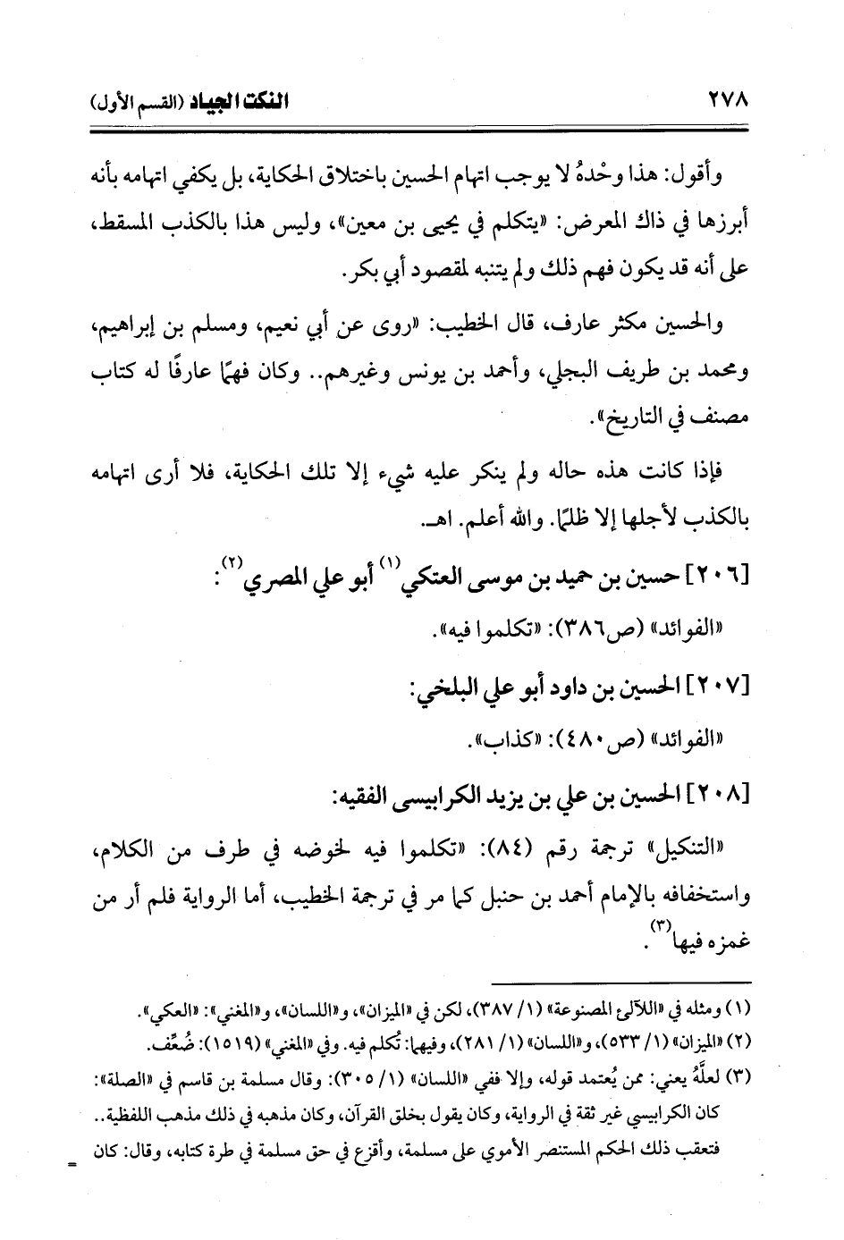 (¬3) لعلَّهُ يعني: ممن يُعتمد قوله، وإلا ففي "اللسان" (1/ 305): وقال مسلمة بن قاسم في "الصلة": كان الكرابيسي غير ثقة في الرواية، وكان يقول بخلق القرآن، وكان مذهبه في ذلك مذهب اللفظية .. فتعقب ذلك الحكم المستنصر الأموي على مسلمقي وأقزع في حق مسلمة في طرة كتابة وقال: كان =