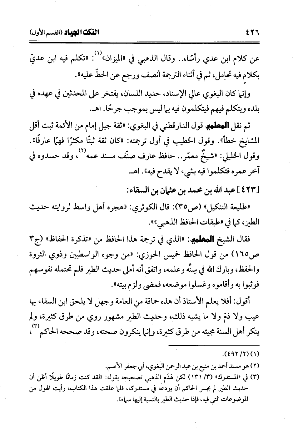 ثم نقل المعلمي قول الدارقطني في البغوي: "ثقة جبل إمام من الأئمة ثبت أقل المشايخ خطأ". وقول الخطيب في أول ترجمته: "كان ثقة ثبتًا مكثرًا فهمًا عارفًا". وقول الخليلي: "شيخٌ معمّر .. حافظ عارف صنّف مسند عمه (¬2)، وقد حسدوه في آخر عمره فتكلموا فيه بشيء لا يقدح فيه". اهـ.