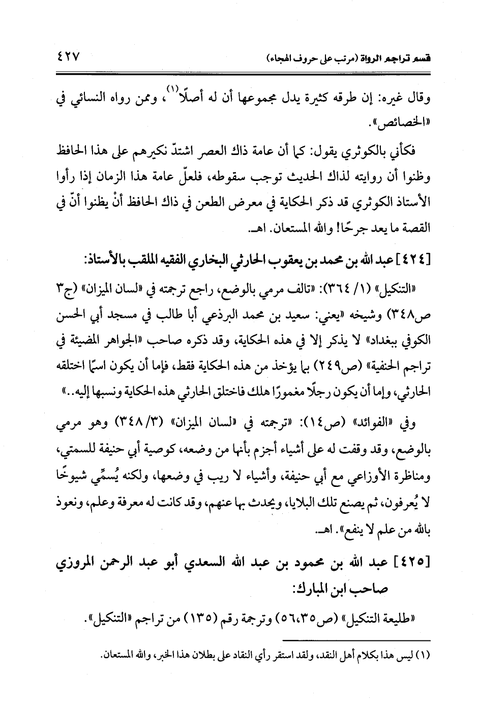 "طليعة التنكيل" (ص 35، 56) وترجمة رقم (135) من تراجم "التنكيل".