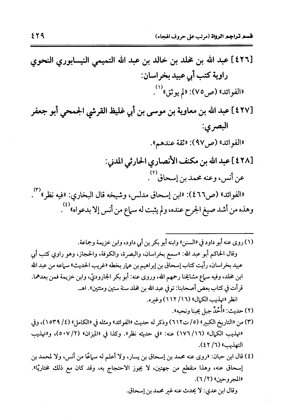 (¬4) قال ابن حبان: "روى عنه محمد بن إسحاق بن يسار، ولا أعلم له سماعًا من أنس، ولا لمحمد بن إسحاق عنه، وهذا منقطع من جهتين، لا يجوز الاحتجاج به. وقد كان مع ذلك مختاريًا". "المجروحين" (2/ 6).