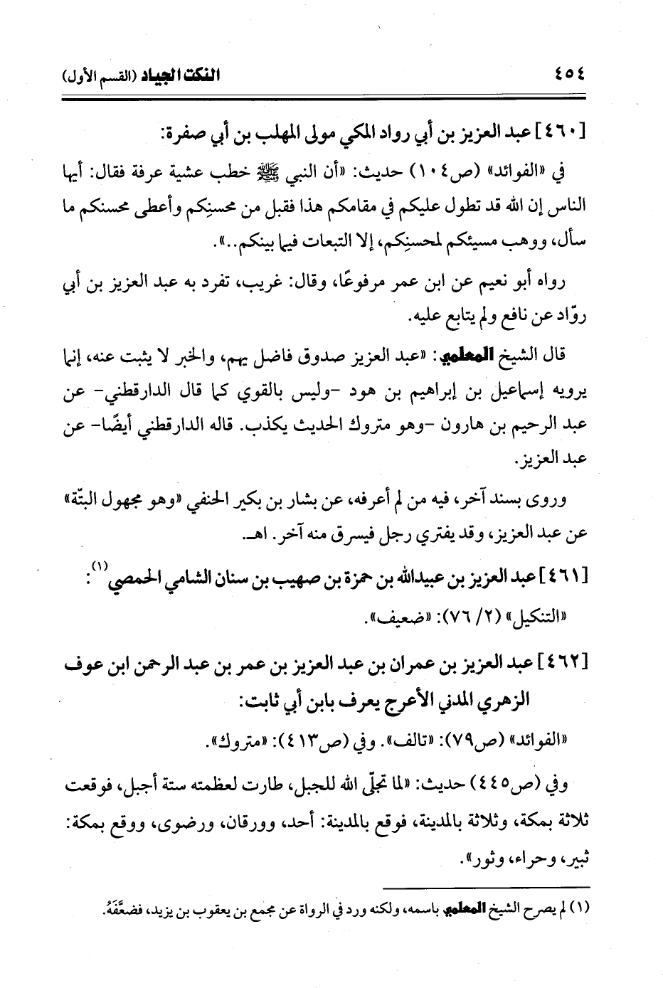 (¬1) لم يصرح الشيخ المعلمي باسمه، ولكنه ورد في الرواة عن مجمع بن يعقوب بن يزيد، فضعَّفَهُ.
