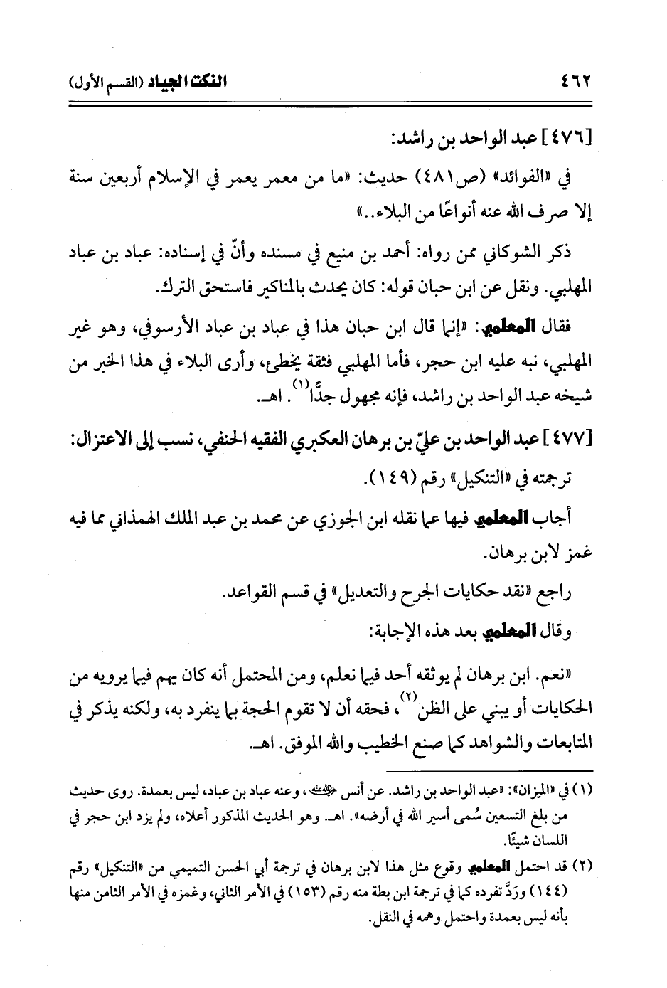 (¬2) قد احتمل المعلمي وقوع مثل هذا لابن برهان في ترجمة أبي الحسن التميمي من "التنكيل" رقم (144) ورَدَّ تفرده كما في ترجمة ابن بطة منه رقم (153) في الأمر الثاني، وغمزه في الأمر الثامن منها بأنه ليس بعمدة واحتمل وهمه في النقل.