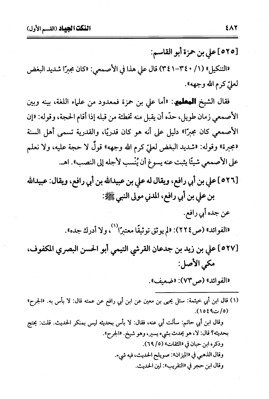 "التنكيل" (1/ 340 - 341) قال علي هذا في الأصمعي: "كان مجبرًا شديد البغض لعليّ كرم الله وجهه".