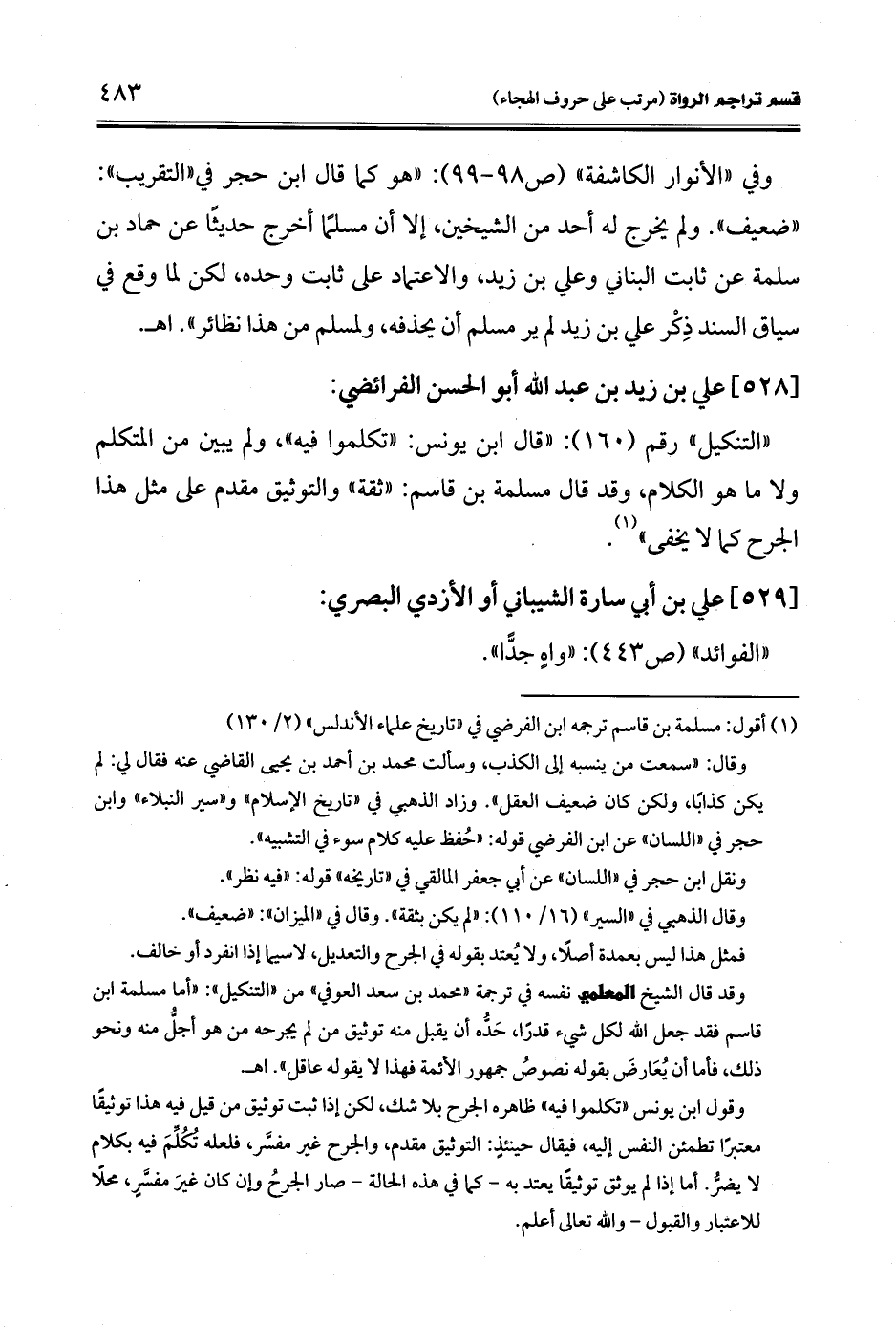"التنكيل" رقم (160): "قال ابن يونس: "تكلموا فيه"، ولم يبين من المتكلم ولا ما هو الكلام، وقد قال مسلمة بن قاسم: "ثقة" والتوثيق مقدم على مثل هذا الجرح كما لا يخفى" (¬1).